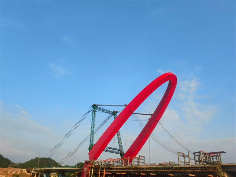 成渝中线沱江特大桥拱肋大节段和主梁顺利合龙